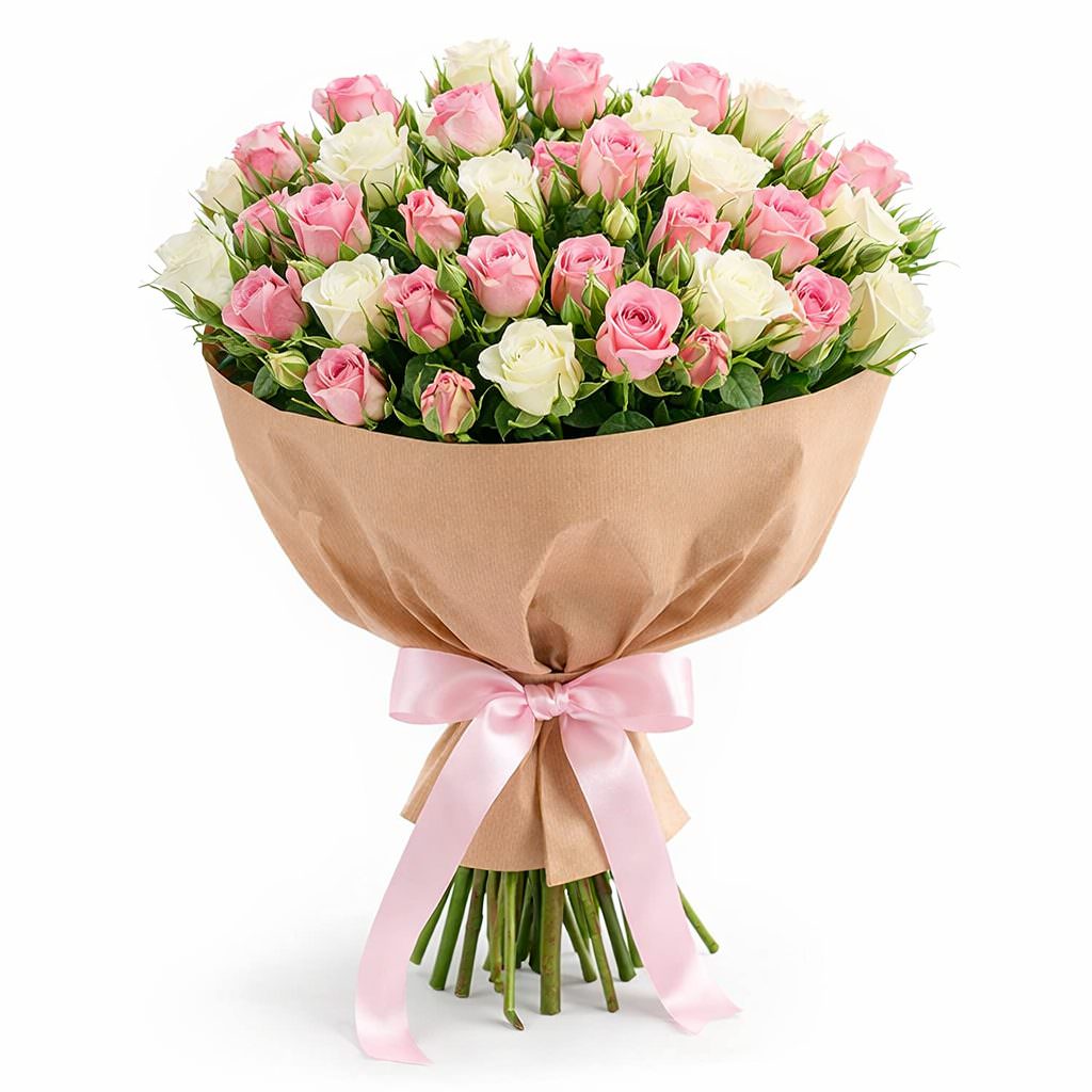 Букет из белых и розовых кустовых роз «Звездопад» с гарантией качества, цены и быстрой доставки!
