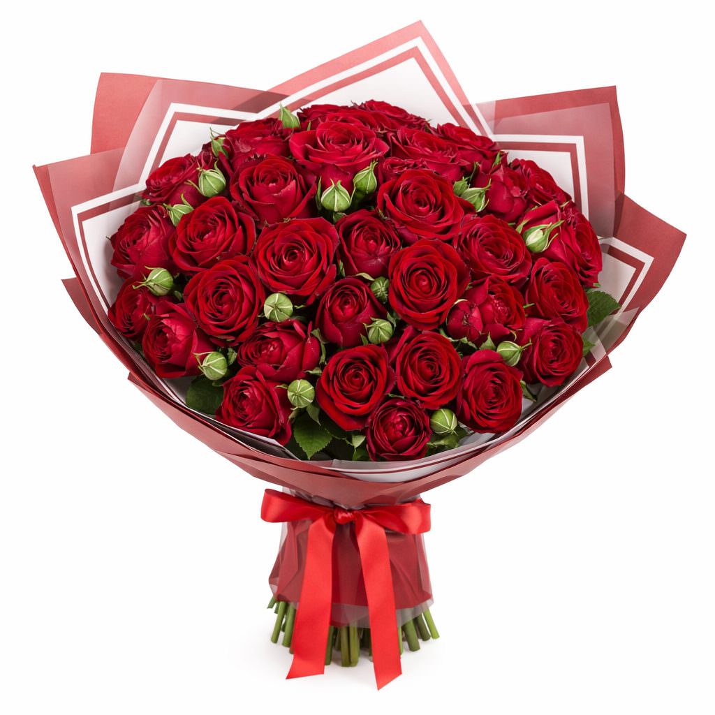 Этот букет создает атмосферу теплого и страстного настроения благодаря насыщенному красному цвету кустовых роз. Букет состоит исключительно из красных кустовых роз. Упакован в матовую пленку с красной атласной лентой, которая придает элегантность композиции. Идеально подойдет для романтического вечера для любимой женщины.