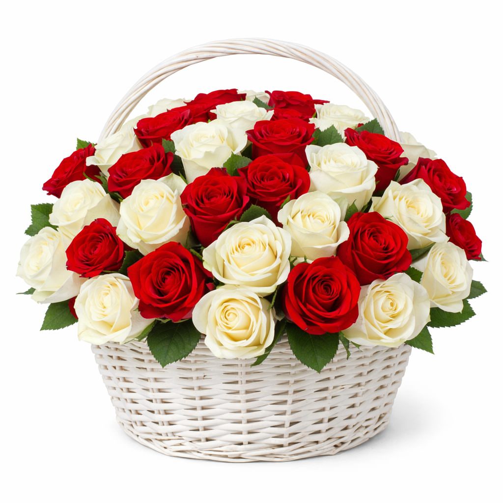 Эта композиция вызывает восхищение благодаря контрастному сочетанию красных и белых роз. В плетёной корзине представлены розы одноголовые красные и белые, что создаёт атмосферу утончённой элегантности. Подойдёт для романтического вечера для любимой женщины, даря особенные эмоции и радость.