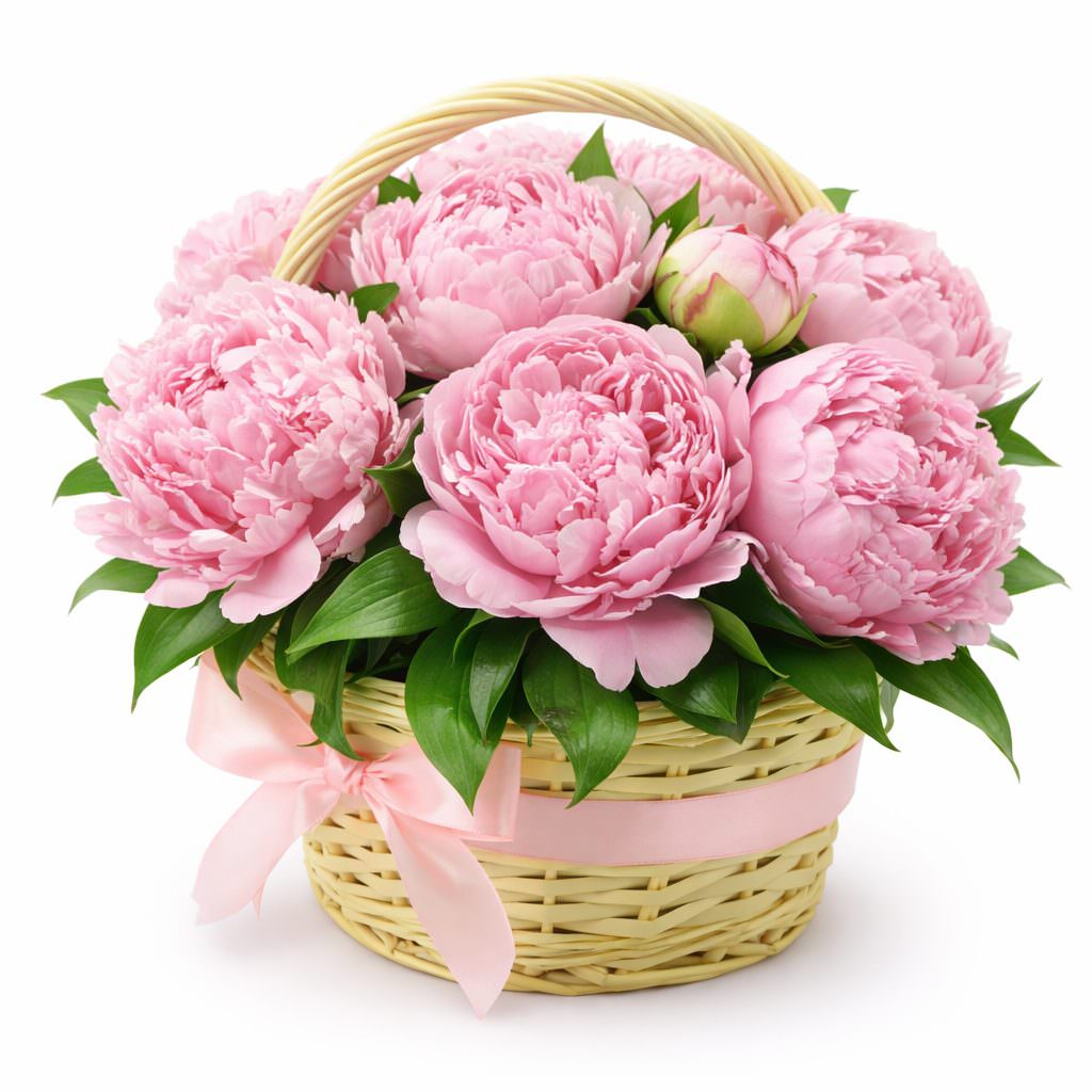 Корзинка с пионами «Розовая мечта» с гарантией качества, цены и быстрой доставки!